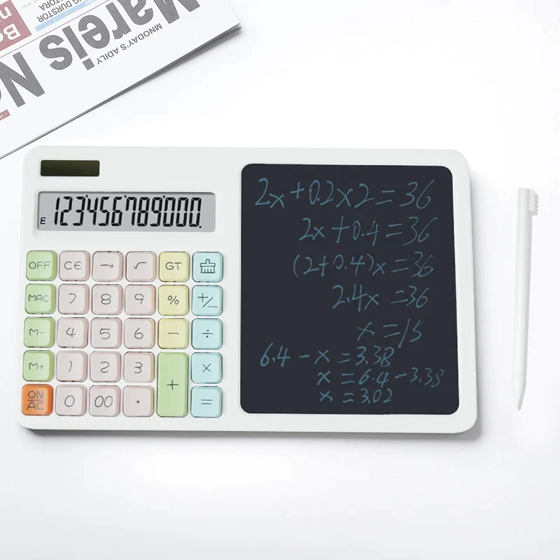 La calculadora con bloc de notas es la herramienta ideal para estudiantes, profesionales y cualquier persona que necesite realizar cálculos de manera eficiente y práctica. Su diseño en un delicado tono rosa pastel combina funcionalidad y estilo, perfecta para quienes buscan simplicidad con un toque de elegancia.